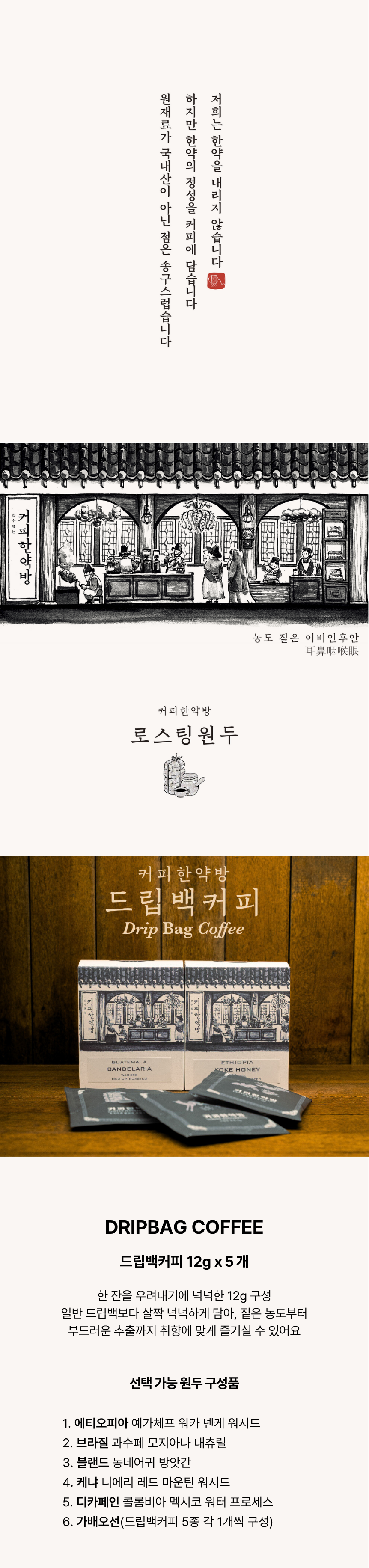 단, 상품에 문제가 있는 경우, 교환 사유 및 확인이 가능한 실물 사진 및 영상등과 함께 7일 이내 커피한약방으로 문의 바랍니다.